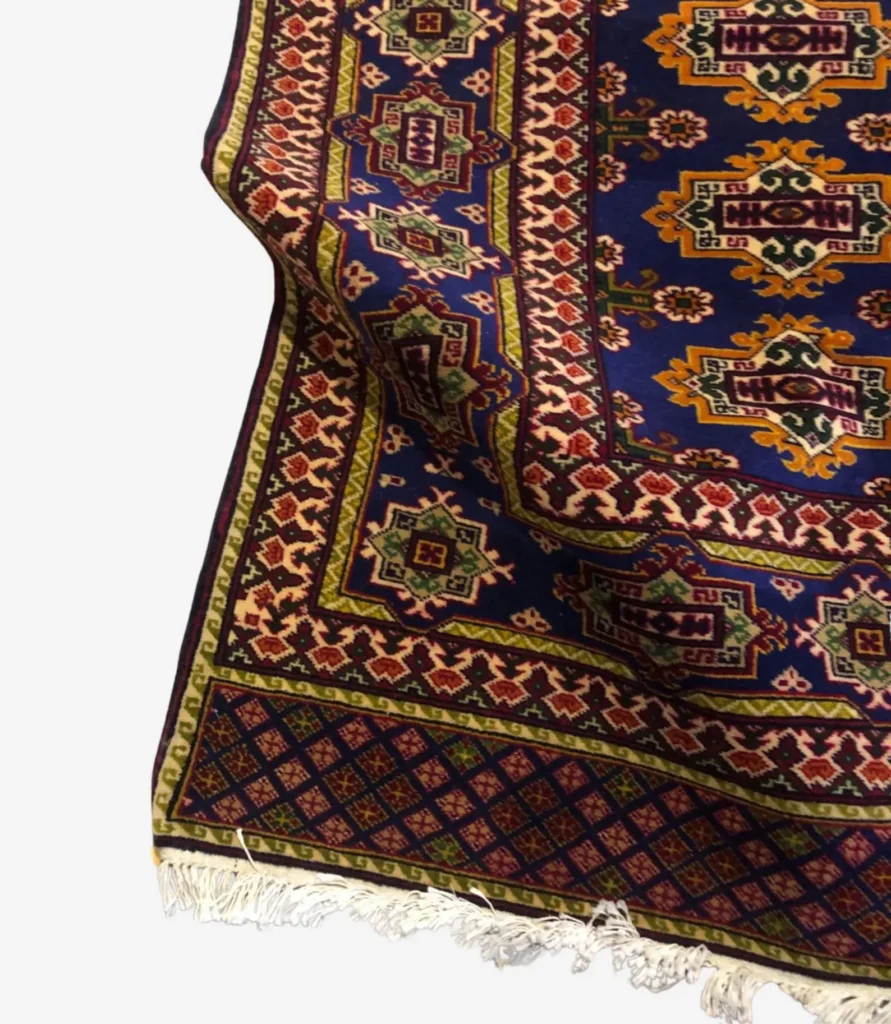 This 120 x 180 cm rug is hand-knotted in Afghanistan using pure wool. It shows the classic Herati pattern, often found in traditional Nokar tribal rugs. The design is full of fine details and deep colors, made to last for years.