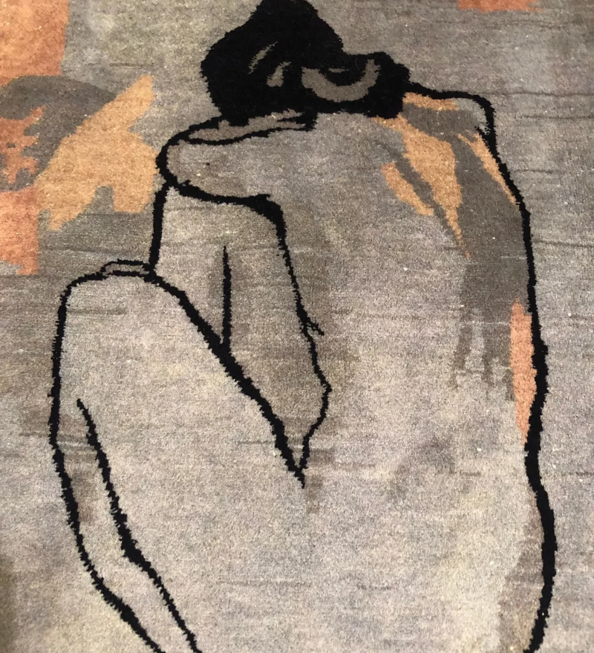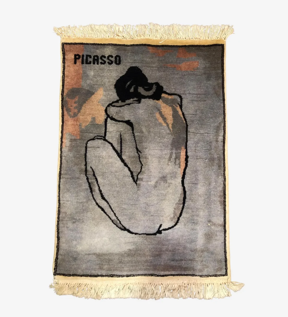 The Picasso Blue Lady Rug is small and calm, just right for a quiet corner in the house. It's made by hand with soft wool and shows a simple blue design that feels peaceful.