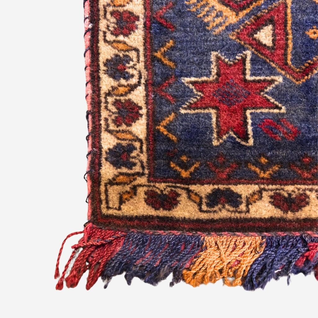 This tribal rug bag is rare because it is fully handmade with vintage weaving methods, combining a knotted wool front and kilim back. Its small size, ethnic patterns, and limited craft make it a unique collectible.