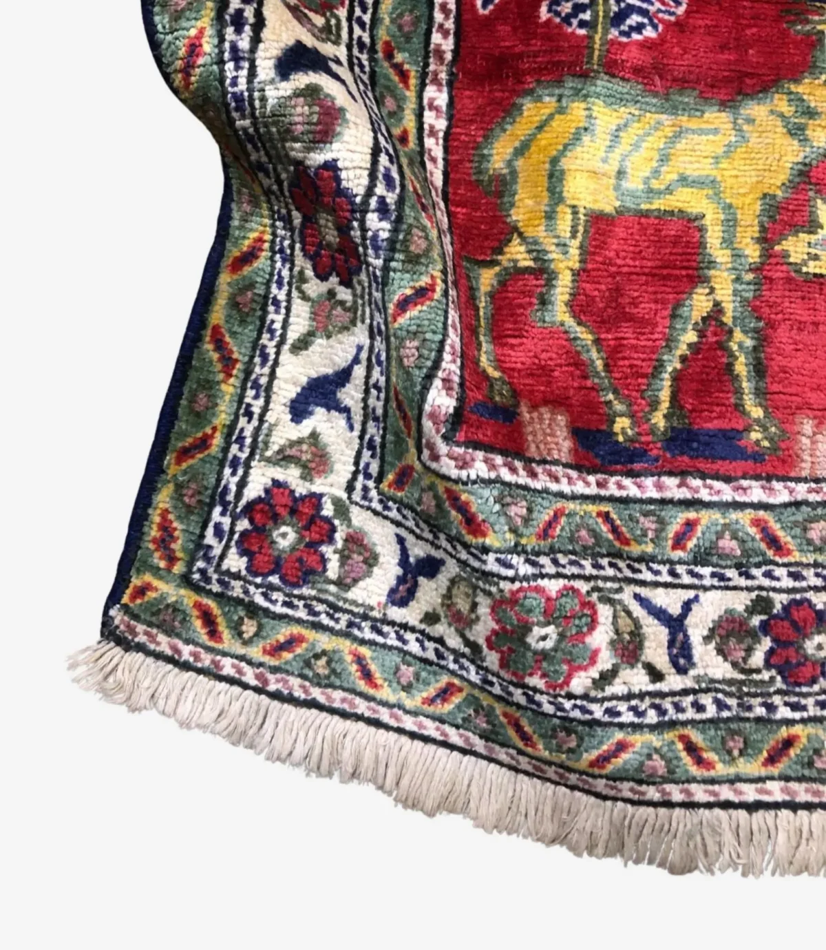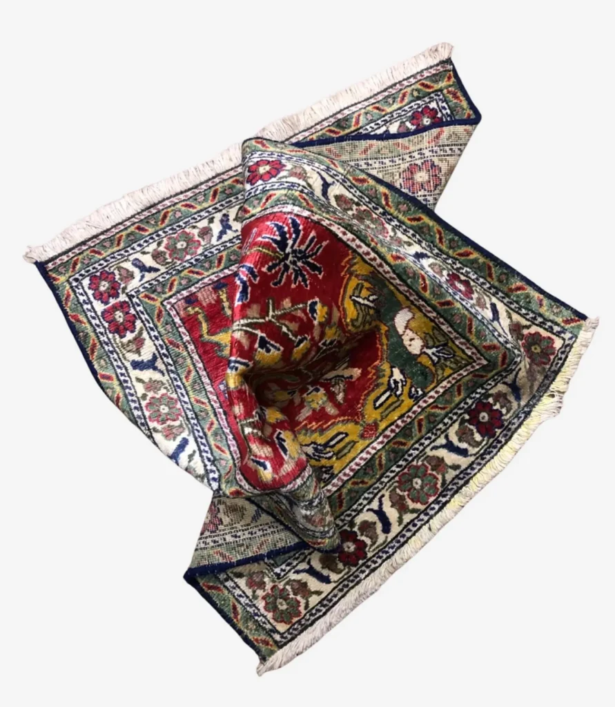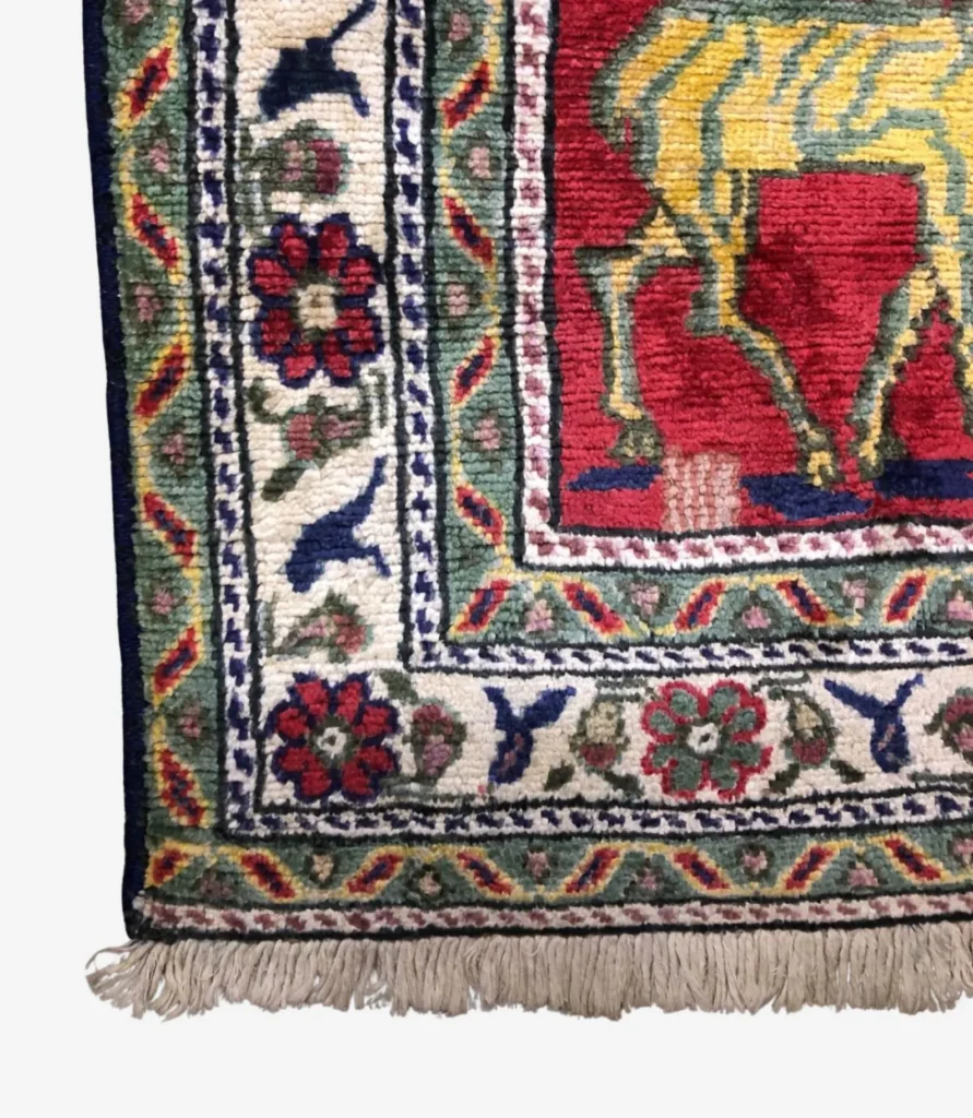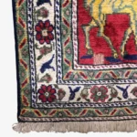 This tribal rug bag is rare because it is fully handmade with vintage weaving methods, combining a knotted wool front and kilim back. Its small size, ethnic patterns, and limited craft make it a unique collectible.