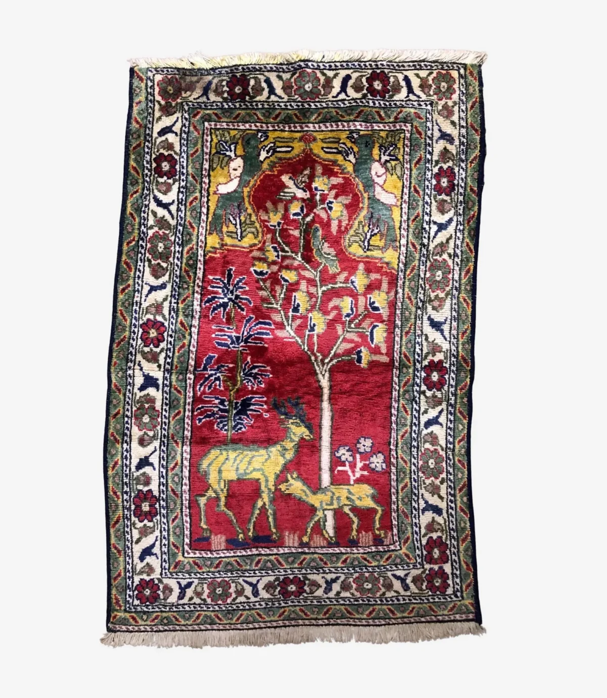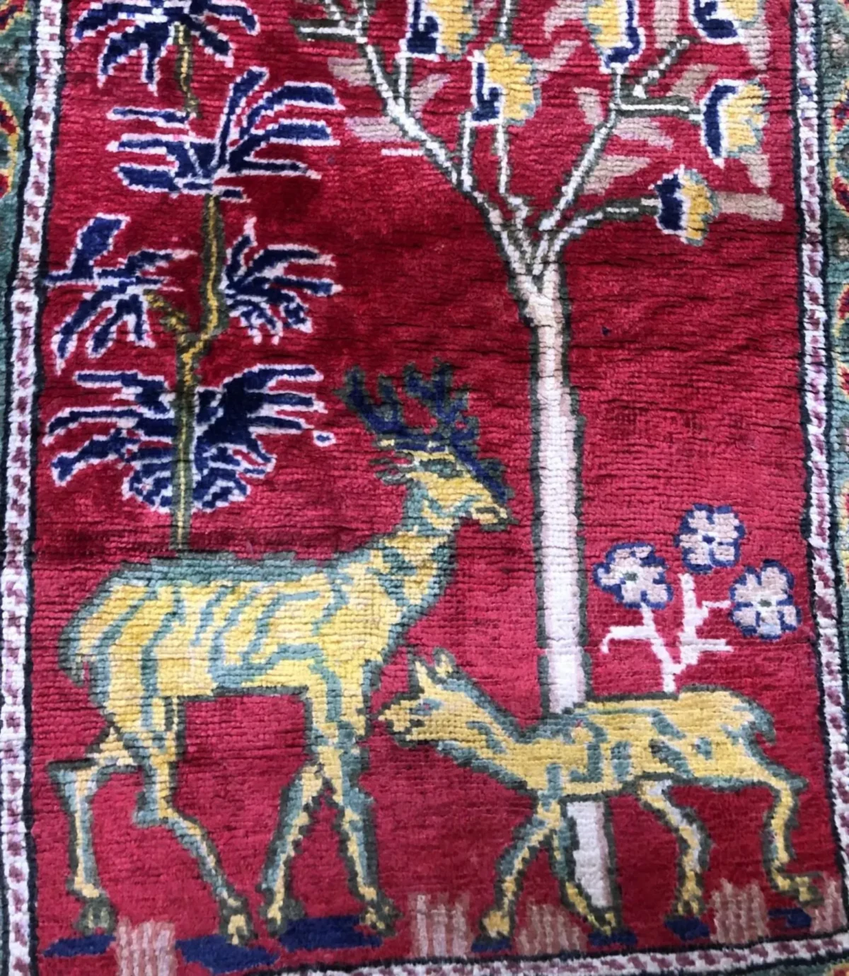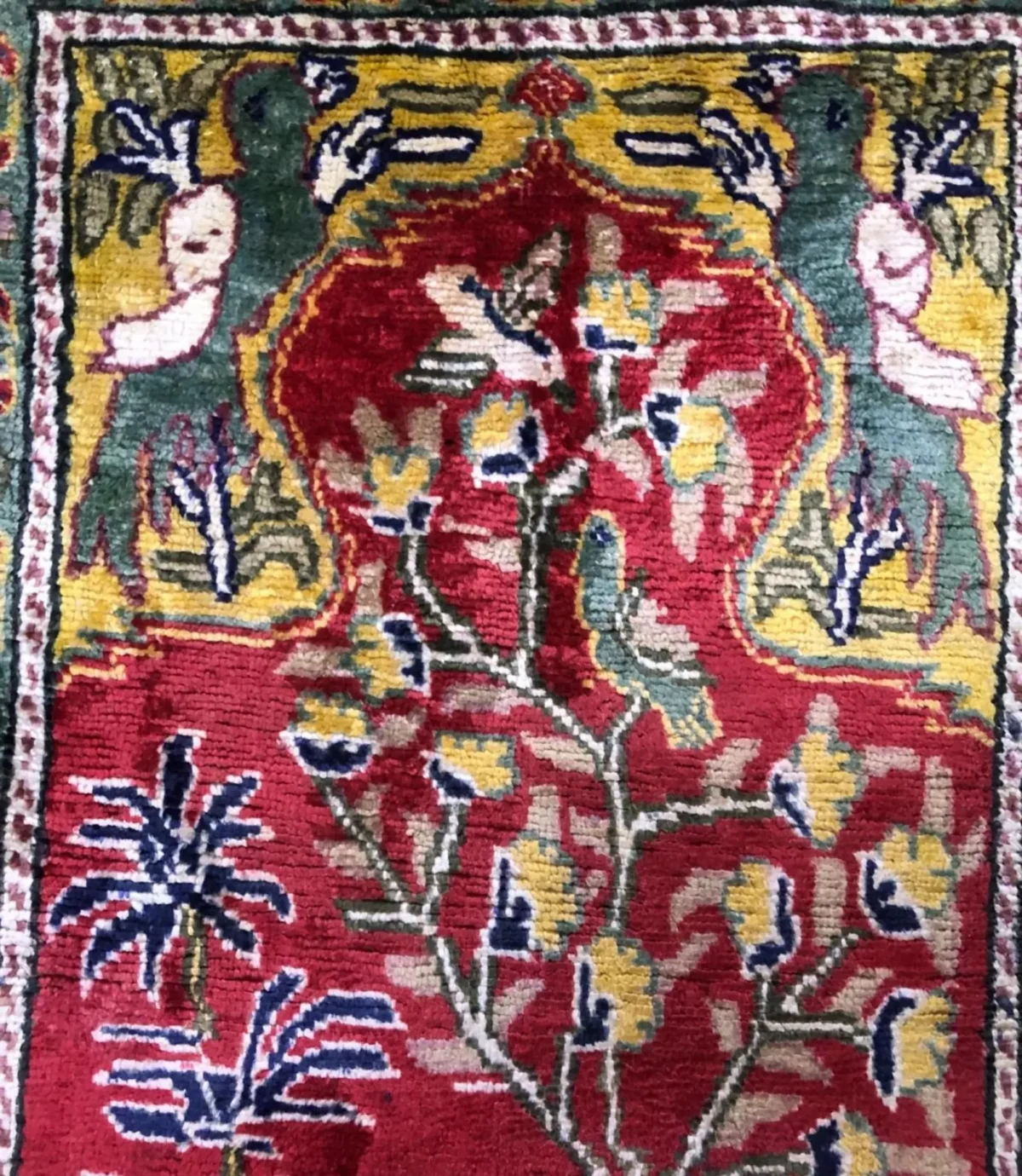 This tribal rug bag is rare because it is fully handmade with vintage weaving methods, combining a knotted wool front and kilim back. Its small size, ethnic patterns, and limited craft make it a unique collectible.
